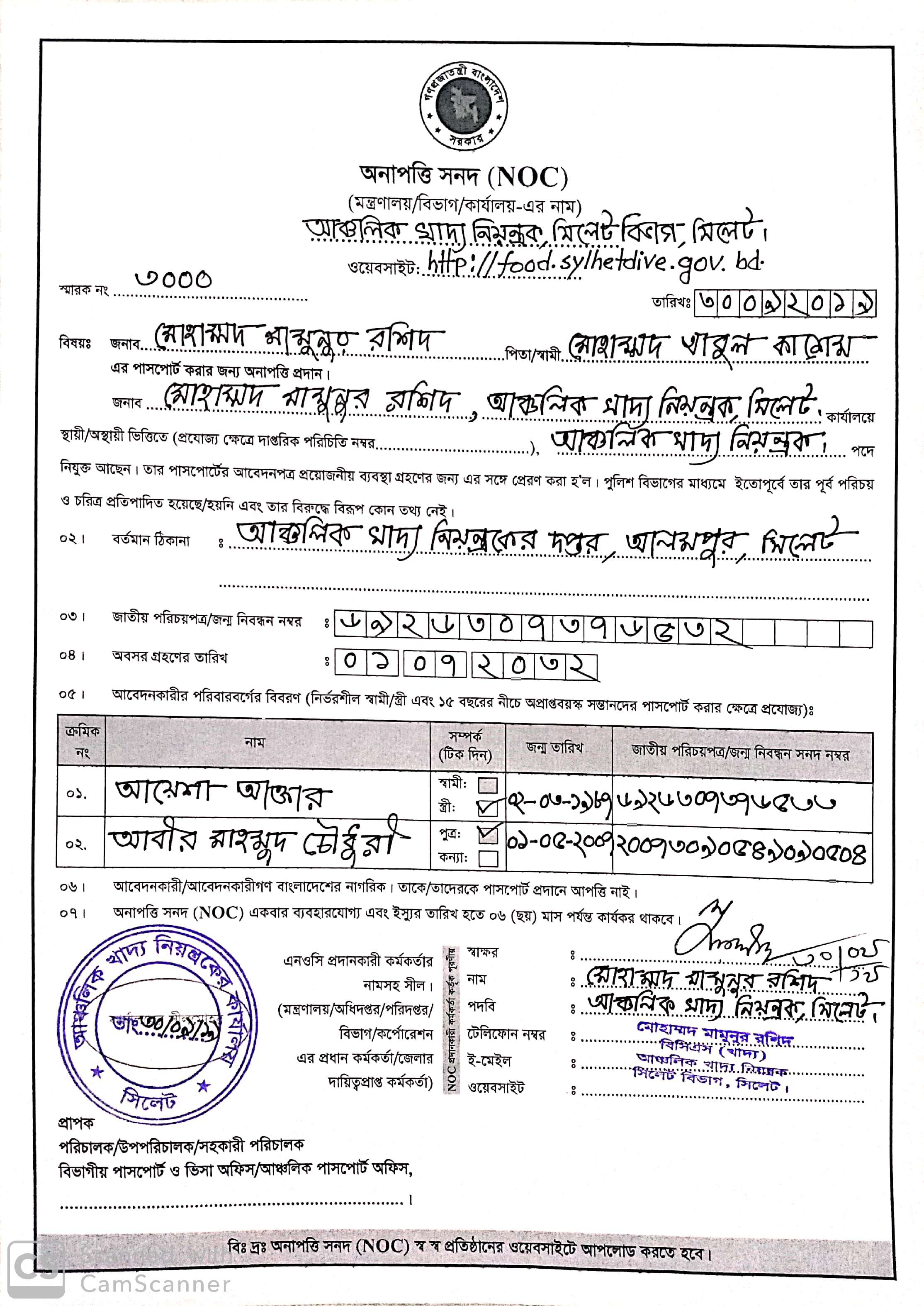 অনাপত্তি সনদ স্মারক নং ৩০০০ তাং-৩০-০৯-২০১৯